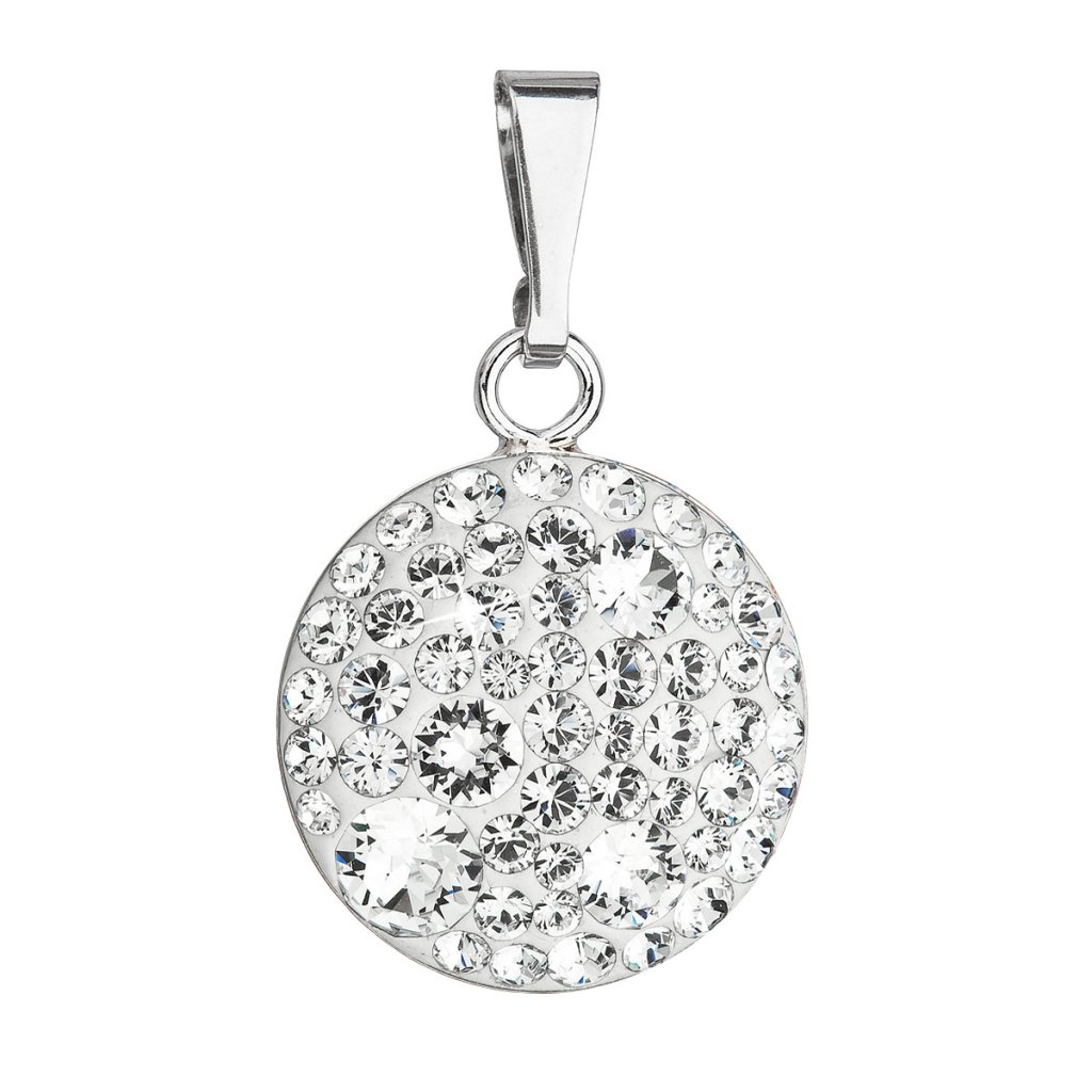 Strieborný prívesok s kryštálmi Swarovski biely okrúhly 34225.1