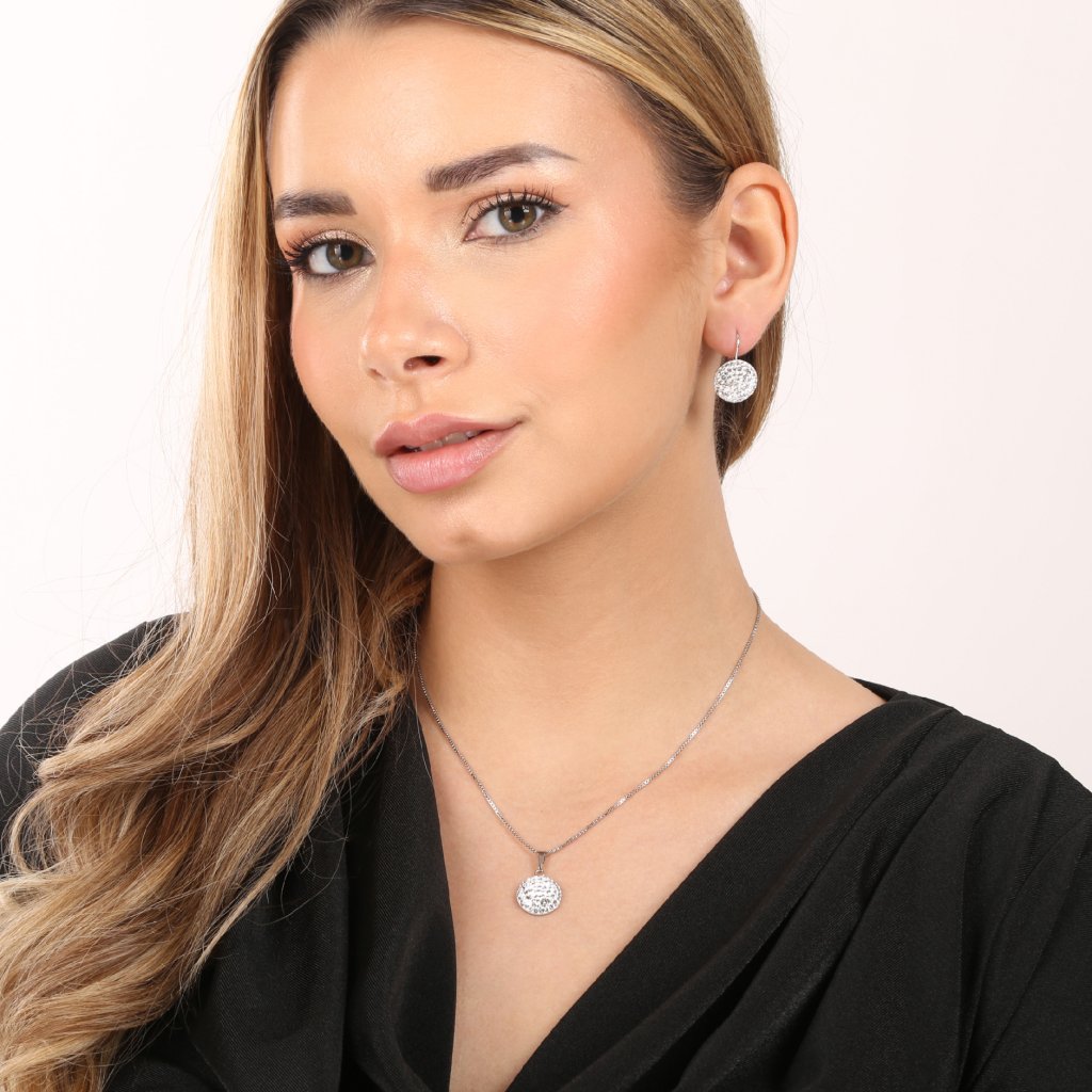 Obzeráte sa po originálnom, luxusne zdobeným príveskom, ktorým by ste mohli doplniť svoj outfit? Odporúčame okrúhly strieborný prívesok bohato vysadený Swarovski kryštálmi !