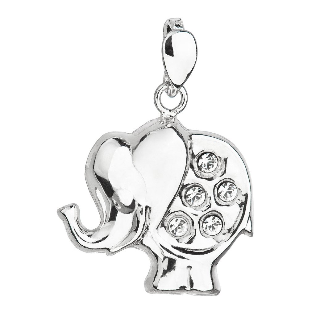 Strieborný prívesok s kryštálmi Swarovski biely slon 34223.1