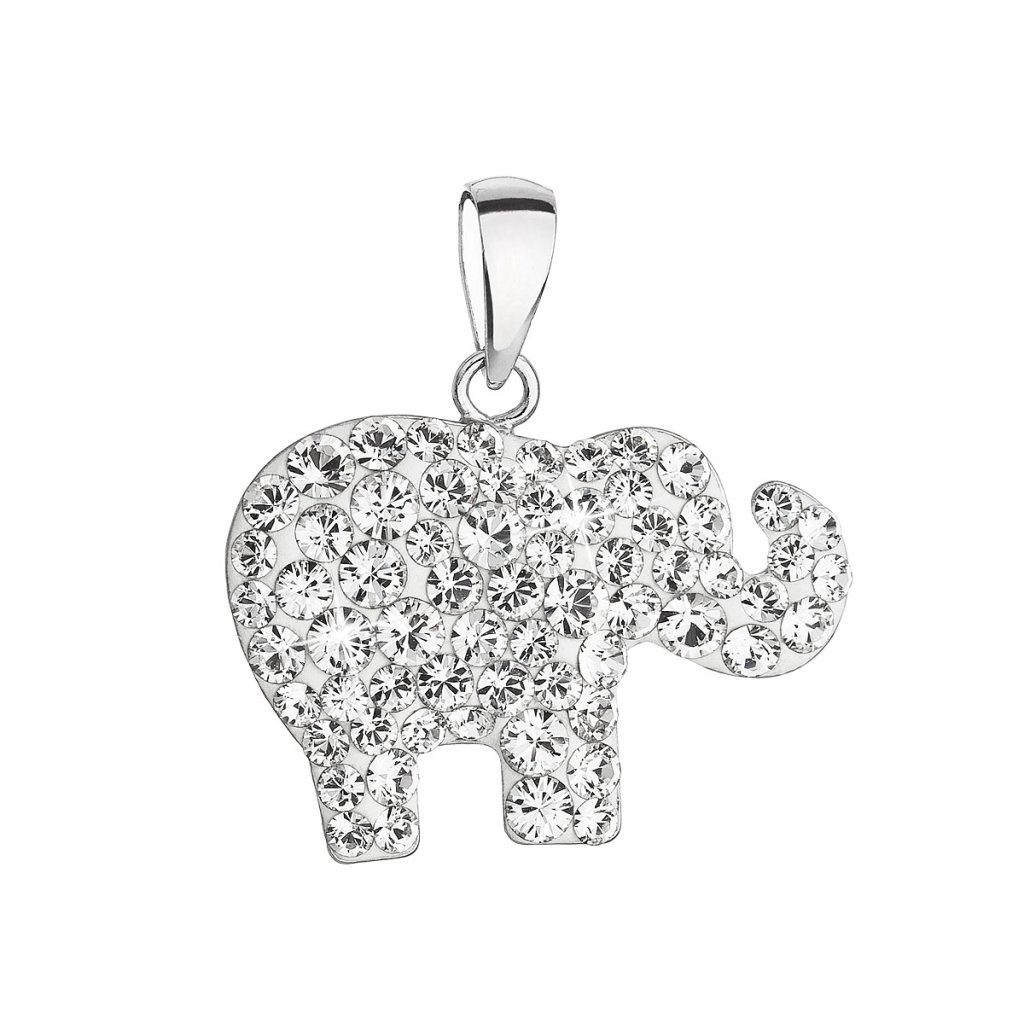 Strieborný prívesok s kryštálmi Swarovski biely slon 34247.1