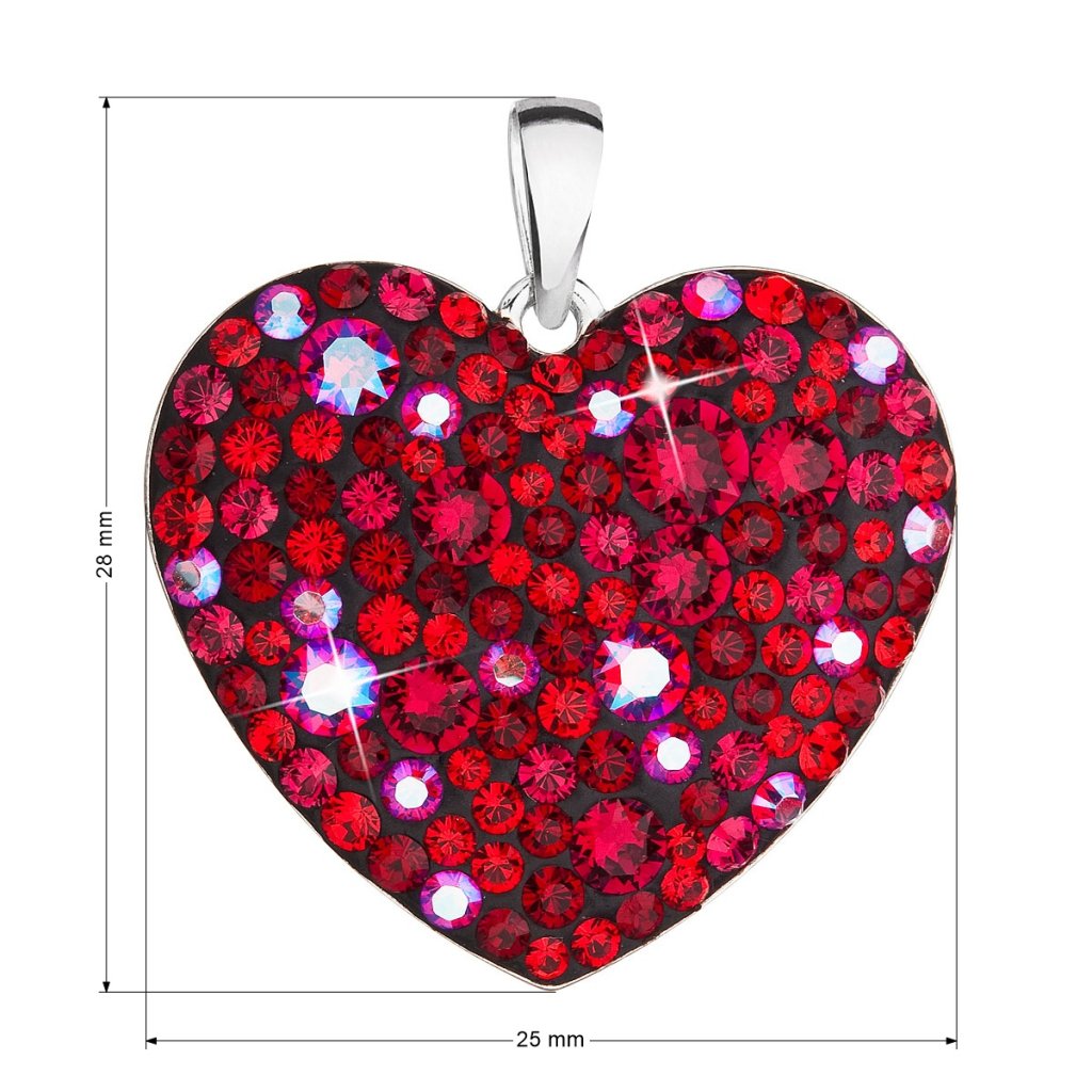 Parametre strieborného prívesku s kryštálmi Swarovski červené srdce 34243.3 cherry