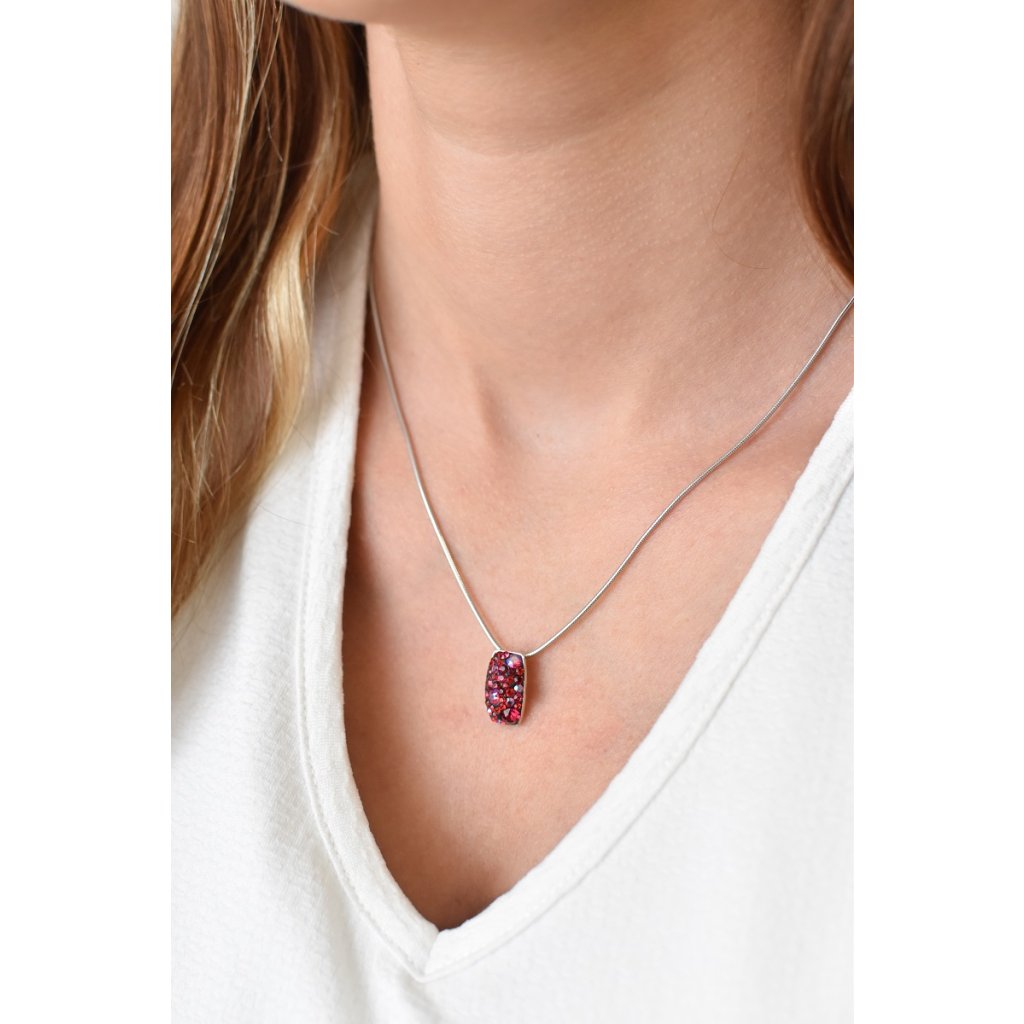 Strieborný prívesok s kryštálmi Swarovski červený obdĺžnik 34194.3 cherry