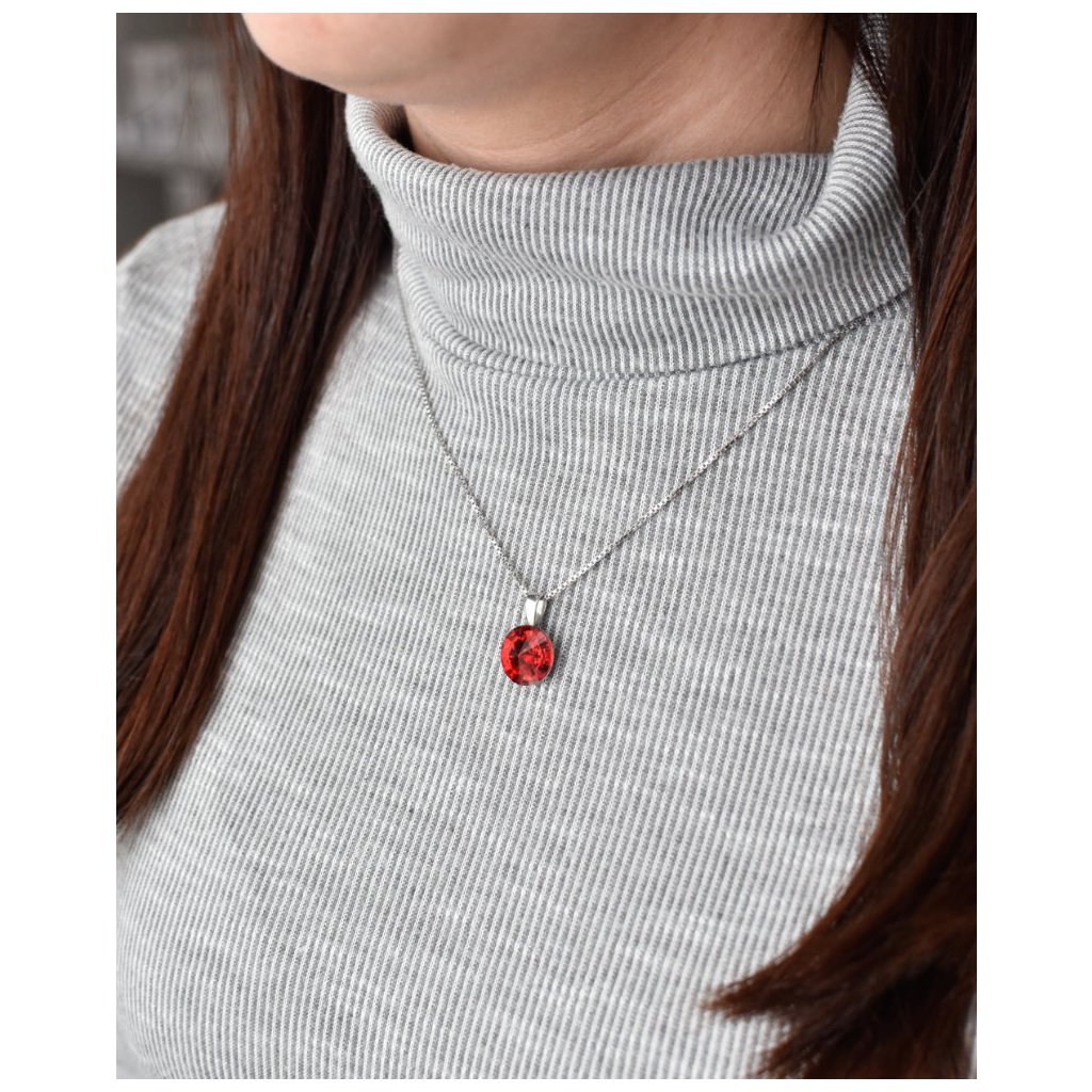 Strieborný prívesok s kryštálmi Swarovski červený okrúhly-rivoli 34112.3