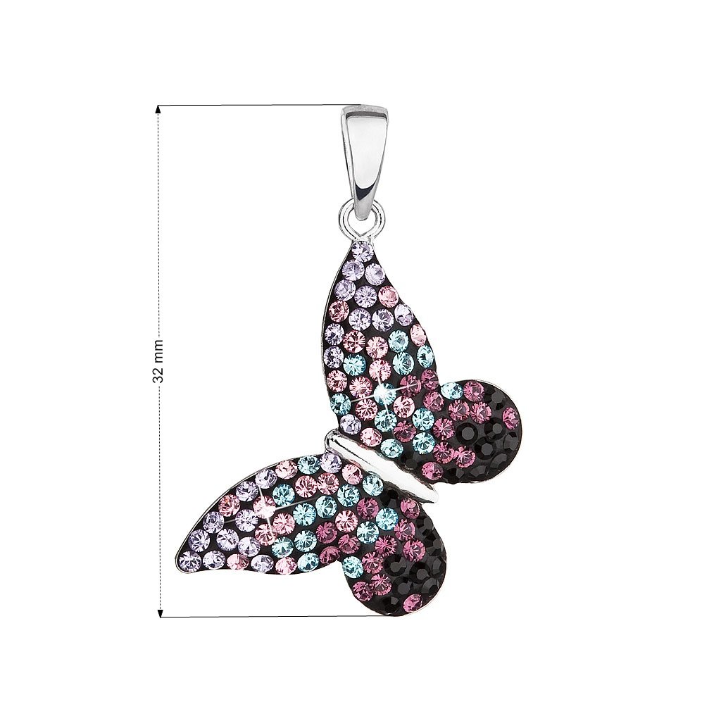 Strieborný prívesok s kryštálmi Swarovski mix farieb motýľ 34192.3 magic violet