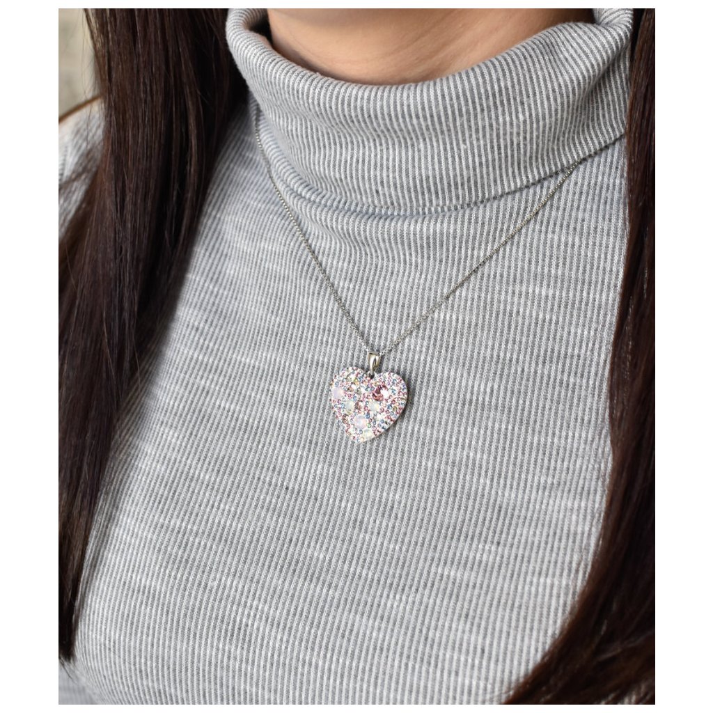 Strieborný prívesok s kryštálmi Swarovski mix farieb srdca 34243.3 magic rose