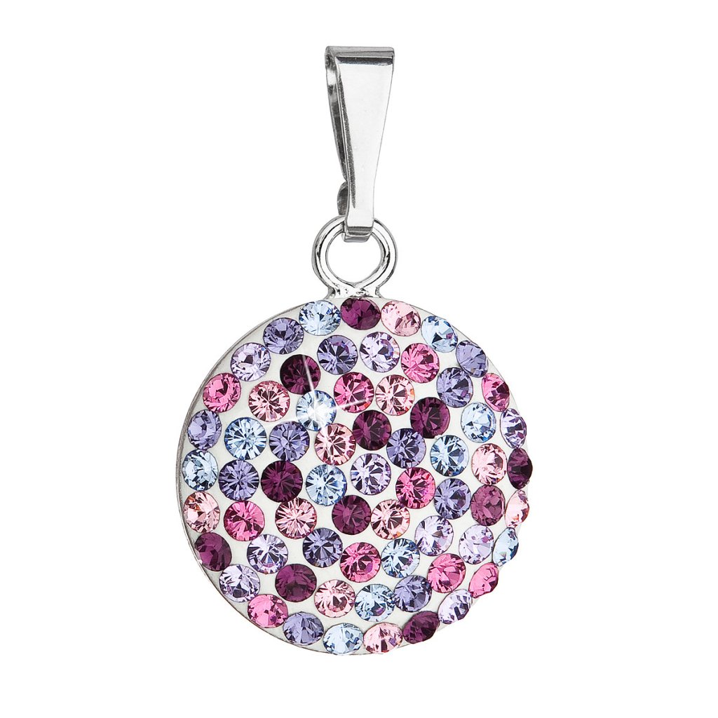 Strieborný prívesok s kryštálmi Swarovski mix fialové okrúhly 34225.3
