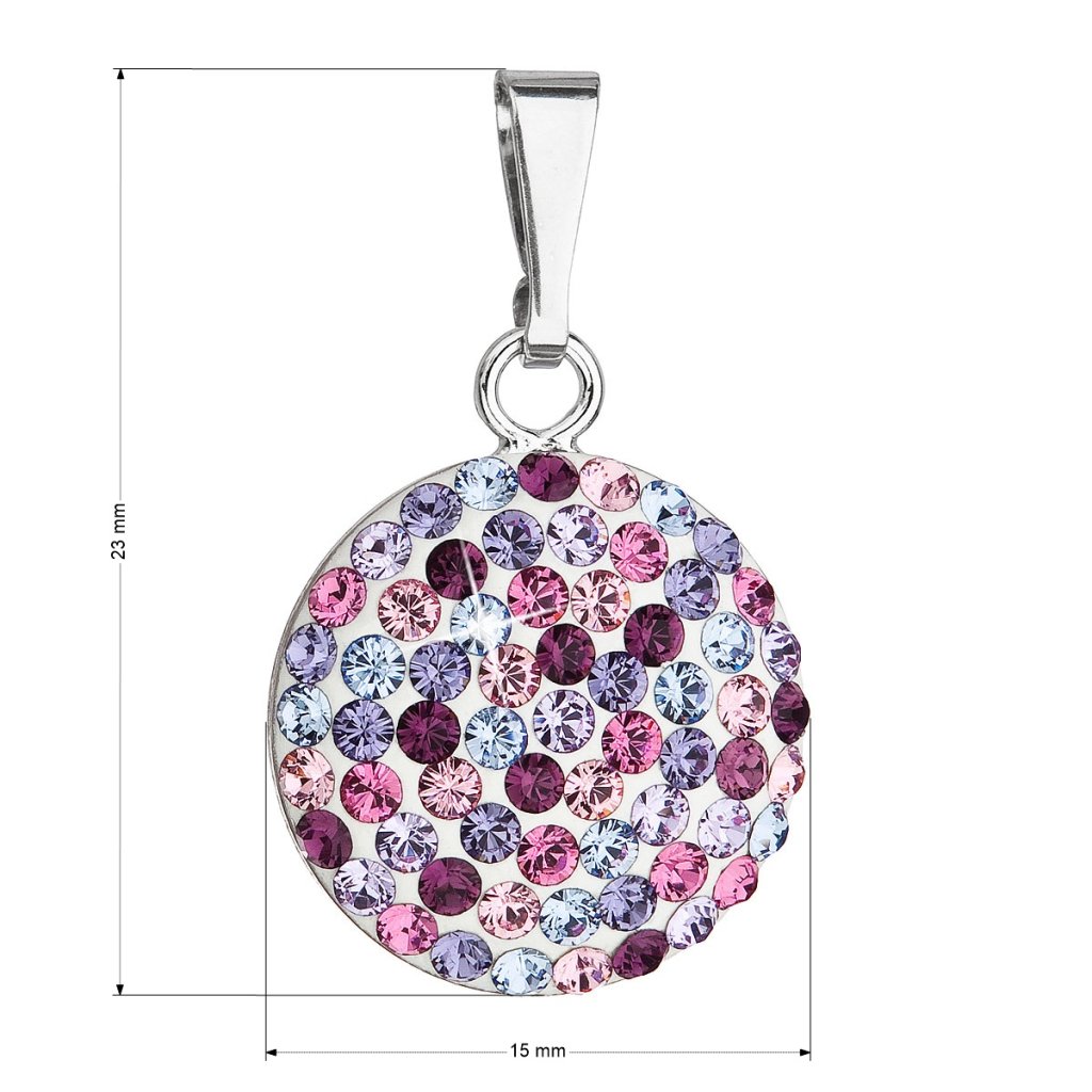 Parametre strieborného prívesku s kryštálmi Swarovski mix fialové okrúhly 34225.3