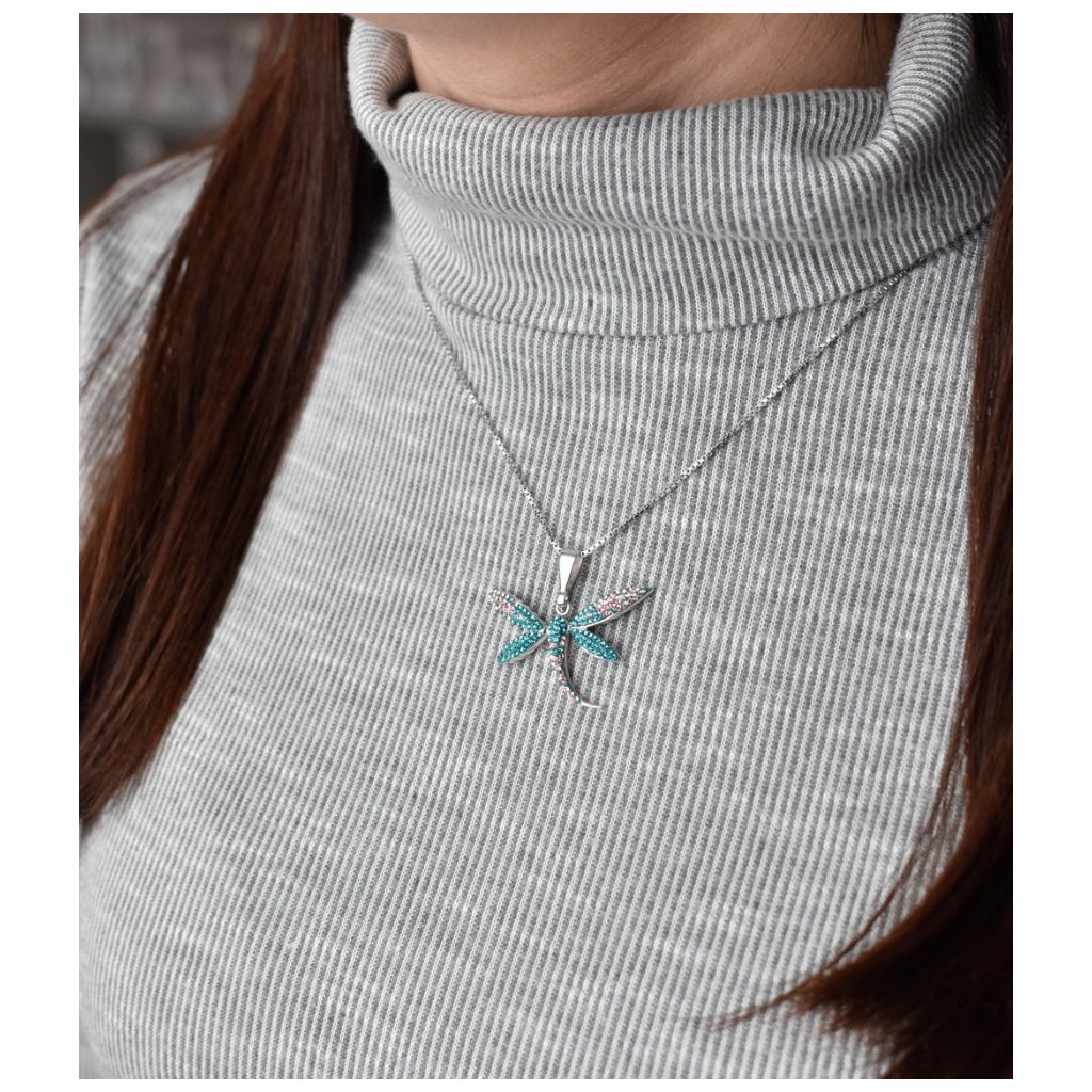Strieborný prívesok s kryštálmi Swarovski modro-zelená vážka 34164.3