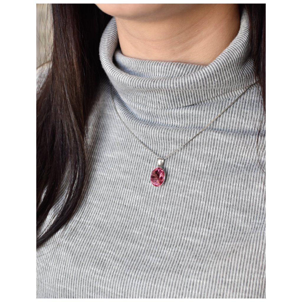 Pôvabná v akejkoľvek situácii! Noste oválny prívesok s ružovým Swarovski kryštálom a očarte svoje okolie.