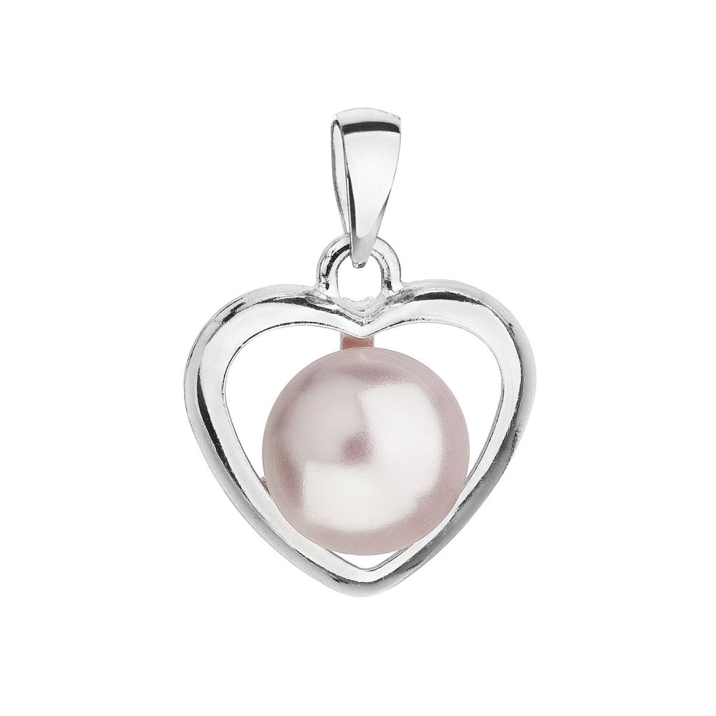 Strieborný prívesok s ružovou Swarovski perlou srdca 34246.3