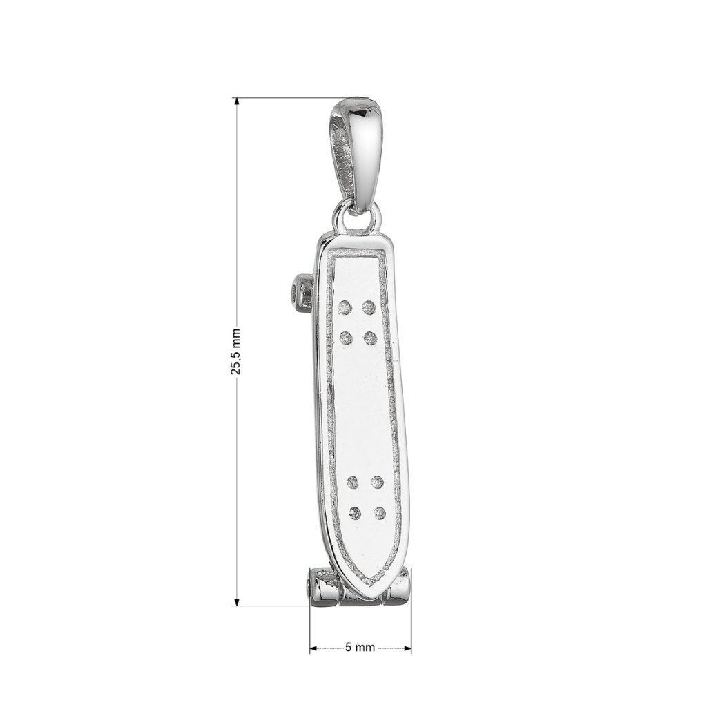Šperk je vyrobený zo striebra rýdzosti 925/1000. Rhodiová úprava chráni prívesok pred sčernením a zaisťuje jeho dlhodobý lesk. Tento prívesok v tvare skateboardu zaujme každého, kto miluje voľnosť, rýchlosť a street kultúru. Detailne spracovaný dizajn verne zachytáva charakteristické rysy skateboardu – od zakrivených koncov dosky až po prepracované kolieska. Malý, ale výrazný symbol životného štýlu, ktorý osloví všetkých, pre ktorých je jazda na doske viac než len šport.