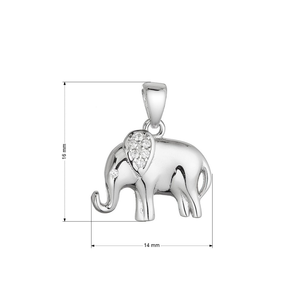 Prívesok 14055.1 je vyrobený zo striebra rýdzosti 925/1000, ktorého povrch je upravený ródiom. Rhodiová úprava chráni šperk pred sčernením a zaisťuje jeho dlhodobý lesk. Precízne spracovaná silueta slona s pozdvihnutým chobotom vyžaruje optimizmus a nádej. Jemné zirkóny lemujúce telo zvieraťa dodávajú šperku decentný ligot a podčiarkujú jeho krehkú krásu. Ideálny darček pre milovníkov zvierat , cestovateľov, alebo tých, ktorí veria v pozitívne energie a symboliku šťastia.