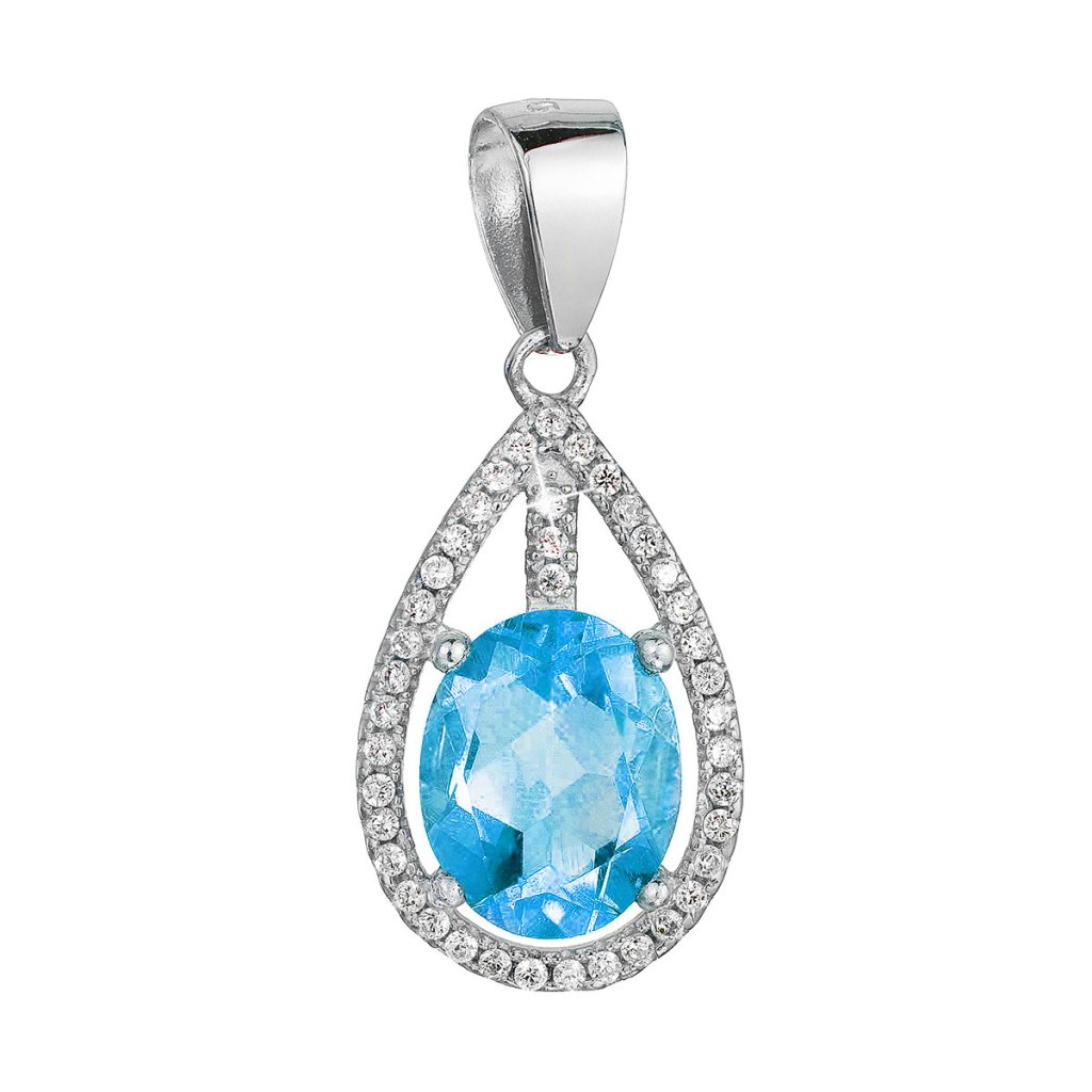 Strieborný prívesok slza modrý zirkón 14034.3 aqua