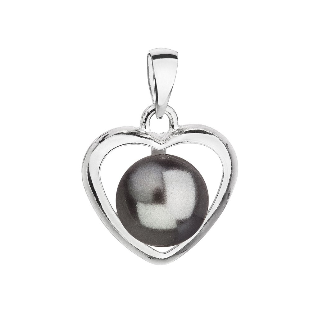 Strieborný prívesok so šedou Swarovski perlou srdca 34246.3