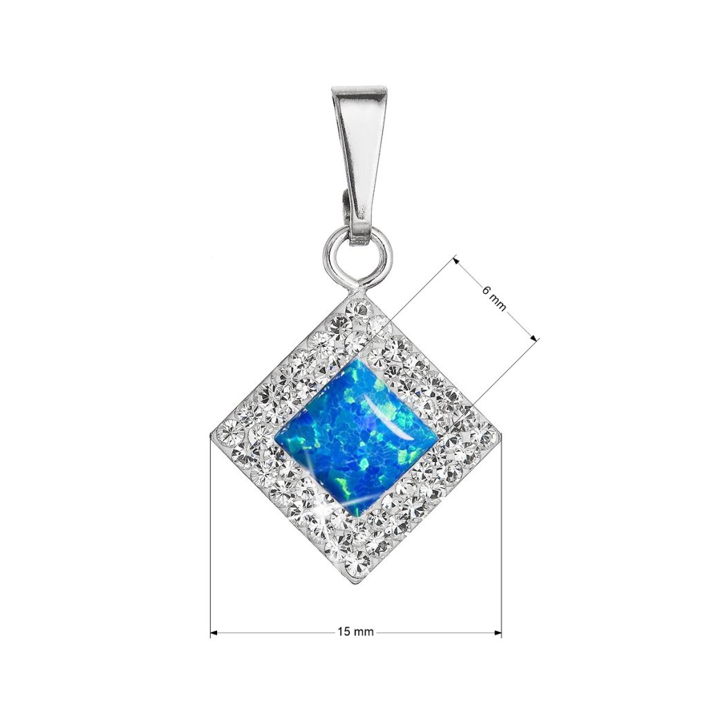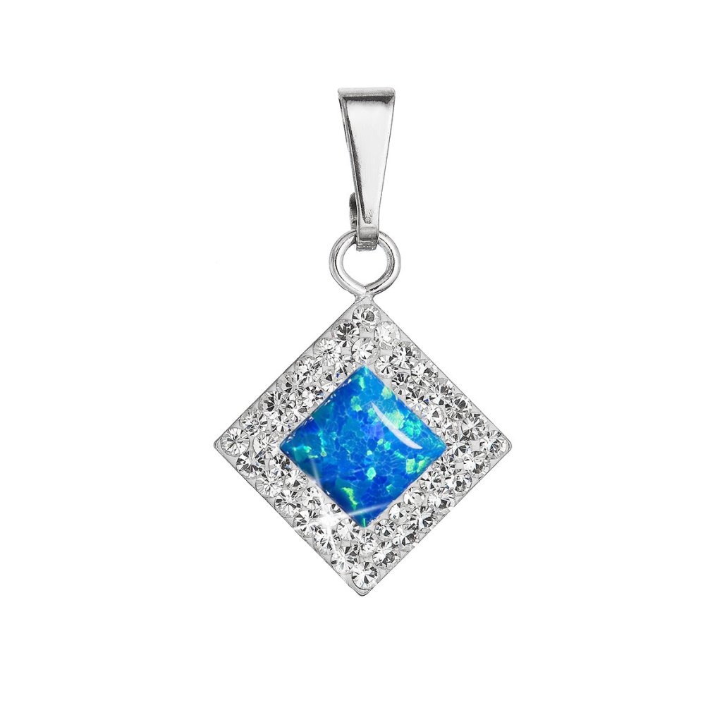Strieborný prívesok so syntetickým opálom a kryštálmi Preciosa modrý kosoštvorec 34260.1 blue