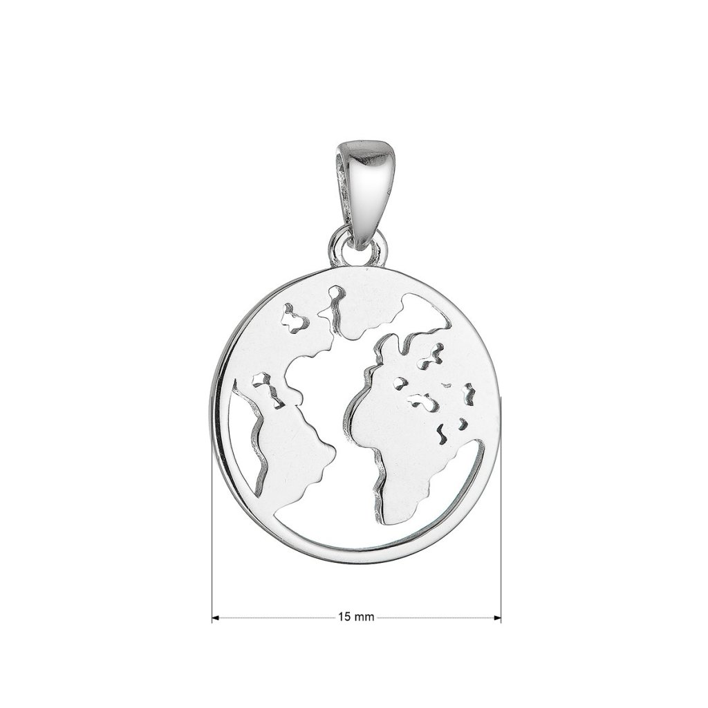 Strieborný prívesok 64064 s okrúhlym tvarom a motívom svetadielov je zaujímavým a univerzálnym módnym doplnkom pre každého.
