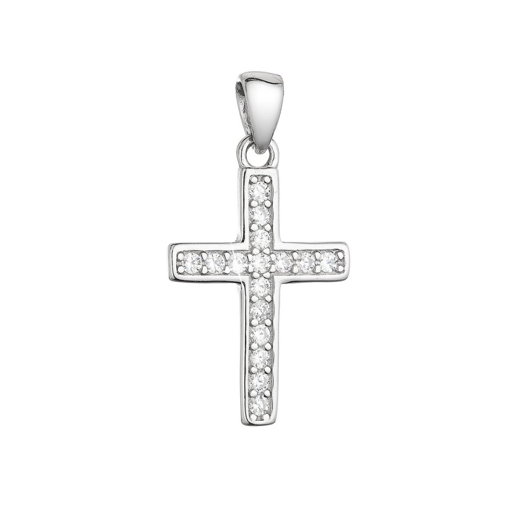 Strieborný prívesok výrazný krížik so zirkónmi biely 14024.1