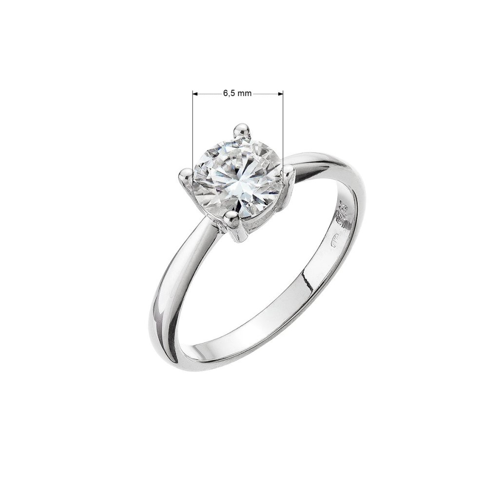 Jemný prsteň s pravým moissanitom s priemerom 6,5 mm je stvorený pre tých, ktorí milujú jednoduchou, žiarivou krásou. Vďaka svojej čistej línii a brilantnému lesku zaujme na prvý pohľad. Okrúhly moissanit je uchytený štyrmi krapnami, ktoré mu dodávajú jemný štvorcový vzhľad. Minimalistický dizajn prsteňa necháva dokonale vyniknúť práve tento kameň, vďaka čomu je ideálny aj ako zásnubný prsteň .