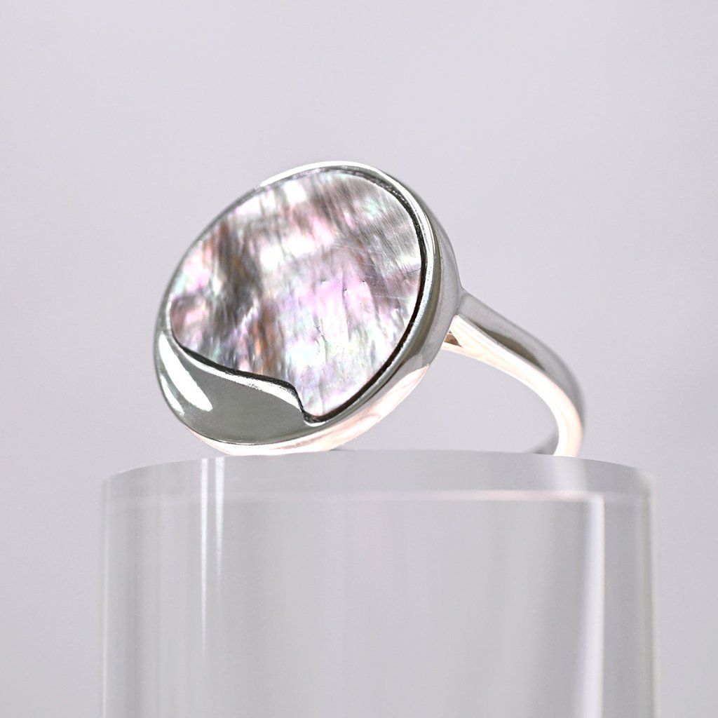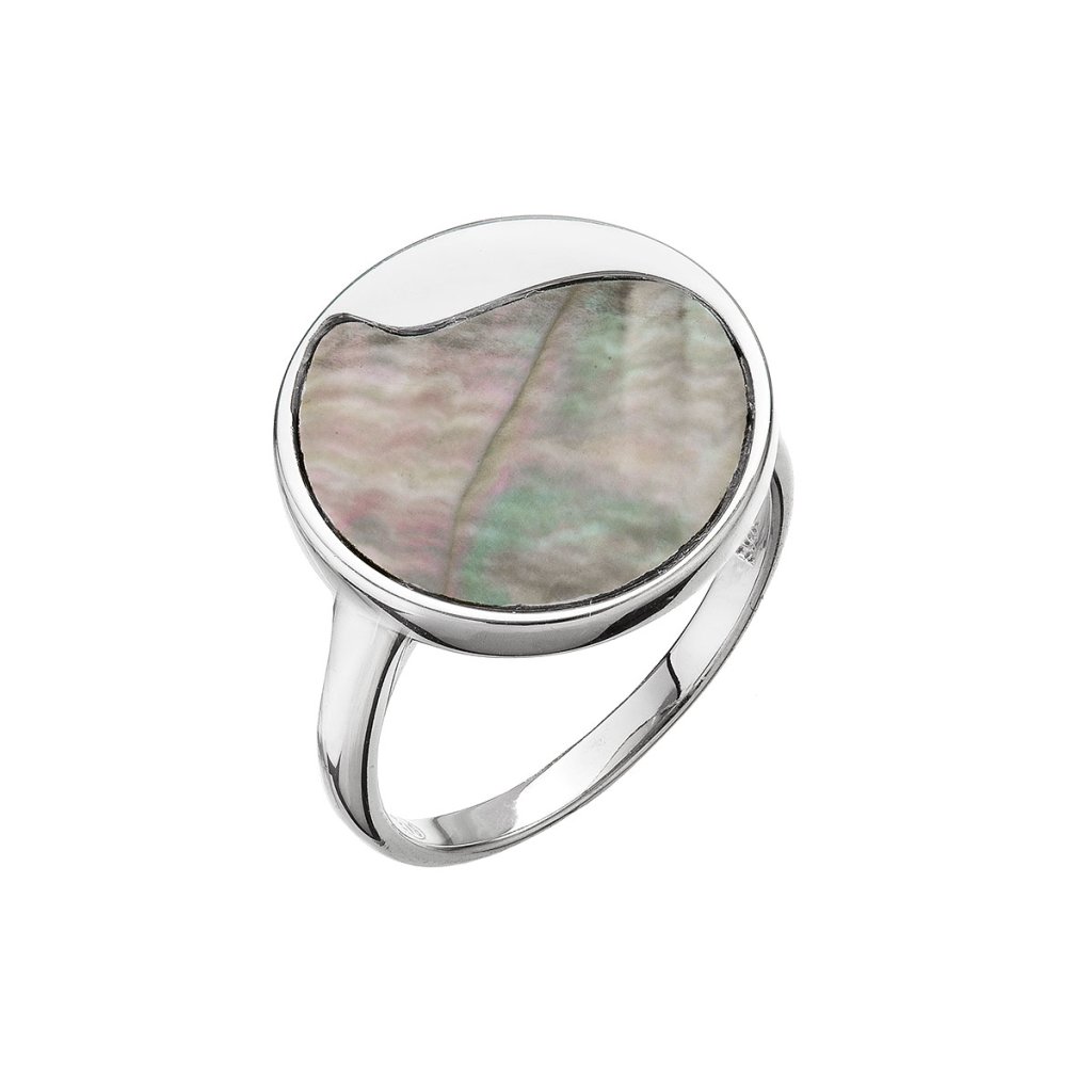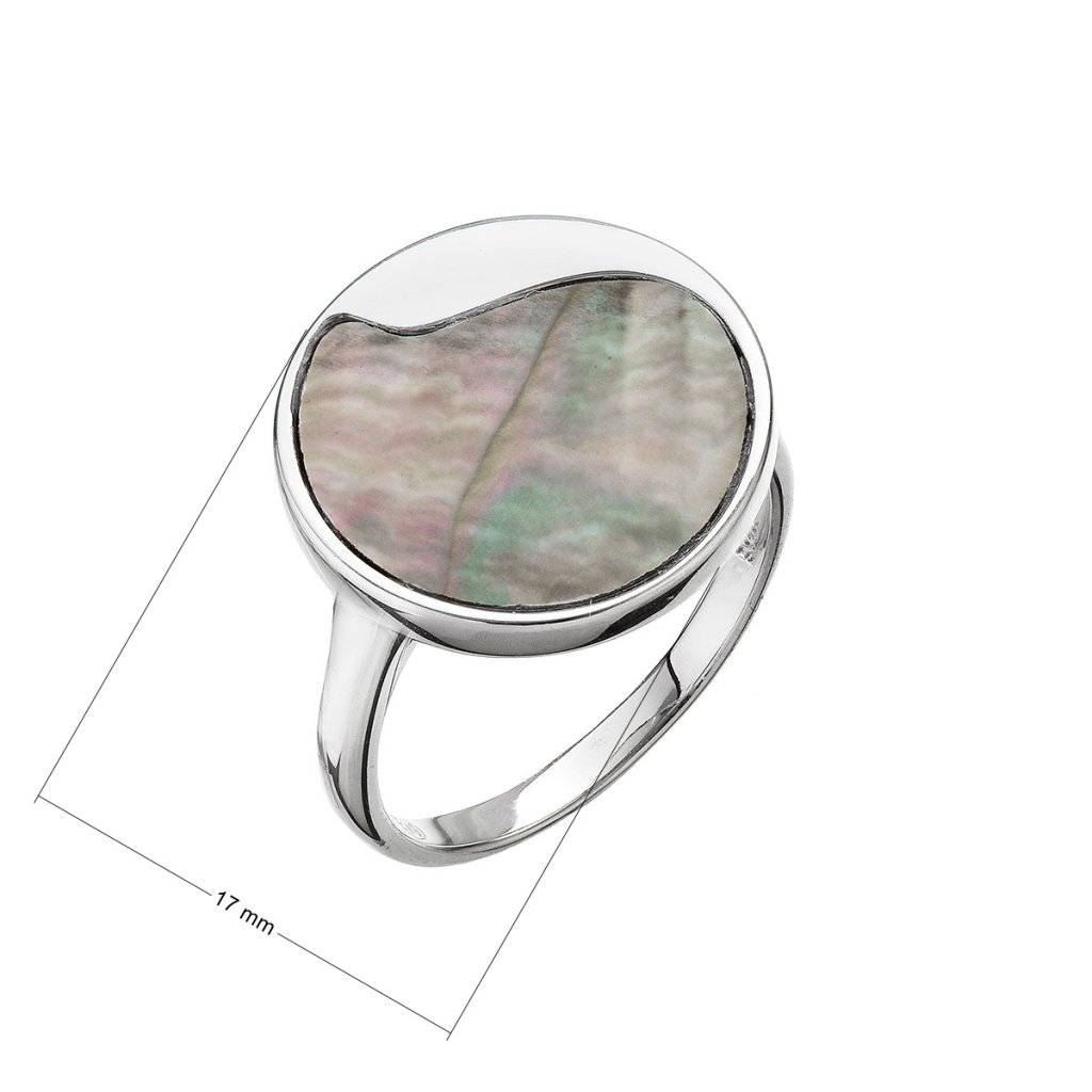 Prsteň je vyrobený zo striebra tej najvyššej kvality rýdzosti 925/1000, dokonale chráneného ródiovou úpravou. Rhodiovaný povrch nielen chráni šperk pred oxidáciou, ale zaisťuje aj jeho neprekonateľný lesk a odolnosť proti poškriabaniu. Okrúhly výrazný tvar s čiernou perleťou je decentne vykrojený, čo dodáva šperku jedinečný charakter.