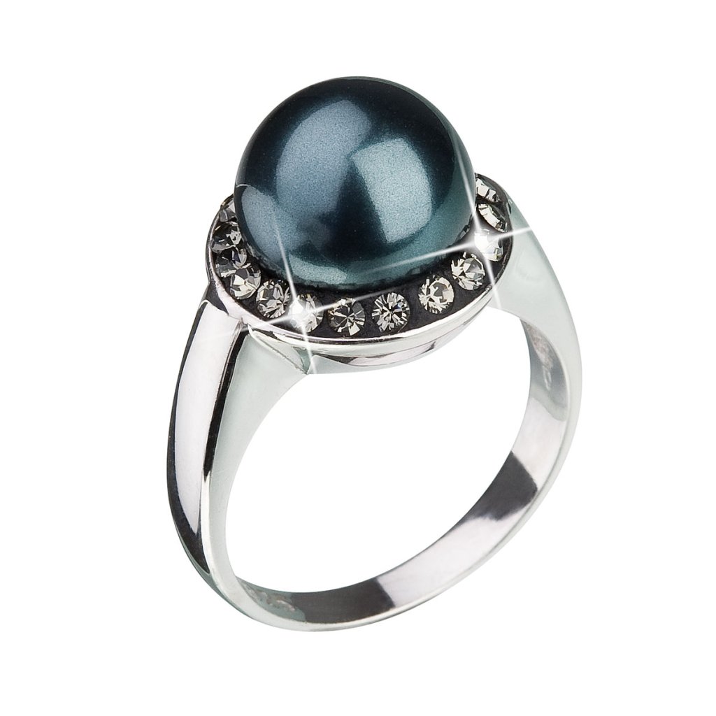 Strieborný prsteň s kryštálmi a zelenou perlou 35021.3 tahiti