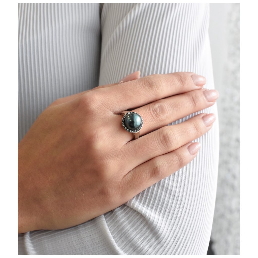 Parametre strieborného prsteňa s kryštálmi a zelenou perlou 35021.3 tahiti