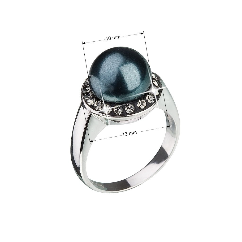 Prsteň 35021.3 je vyrobený zo striebra rýdzosti 925/1000 s povrchovou úpravou ródiom. Rhodium šperk ochráni proti sčernaniu, zožltnutiu aj poškriabaniu. Šperk zdobí veľká okrúhla perla v tmavo zelenej farbe, ktorú lemujú malé šedé trblietavé kryštáliky.