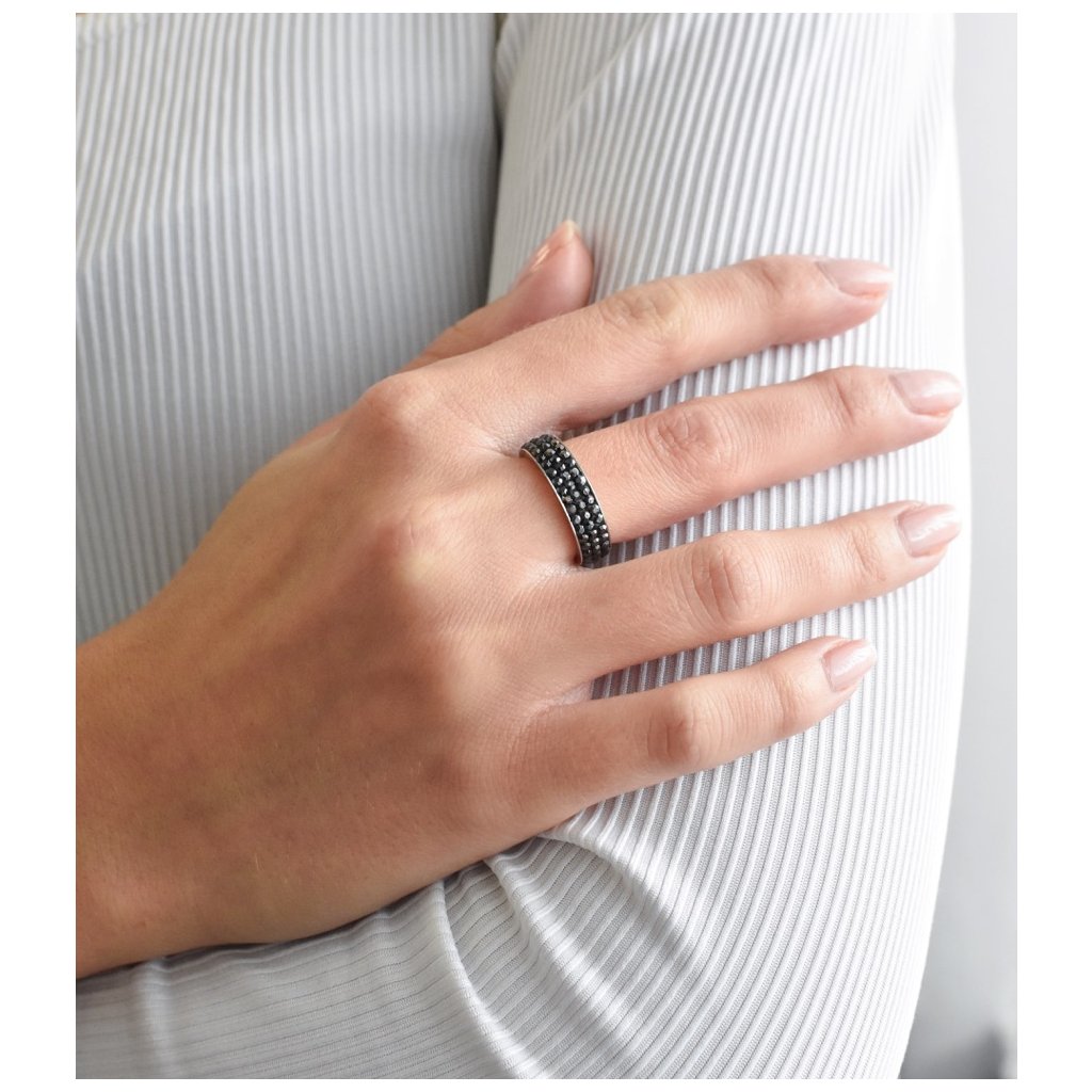 Parametre strieborného prsteňa s kryštálmi čierny 35001.5 hematite