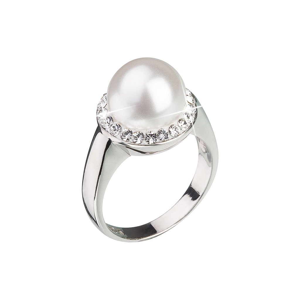Strieborný prsteň s kryštálmi Preciosa s bielou perlou 35021.1