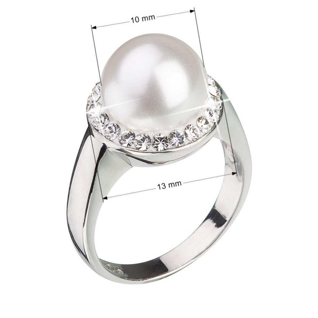 Parametre strieborného prsteňa s kryštálmi Preciosa a bielou perlou 35021.1