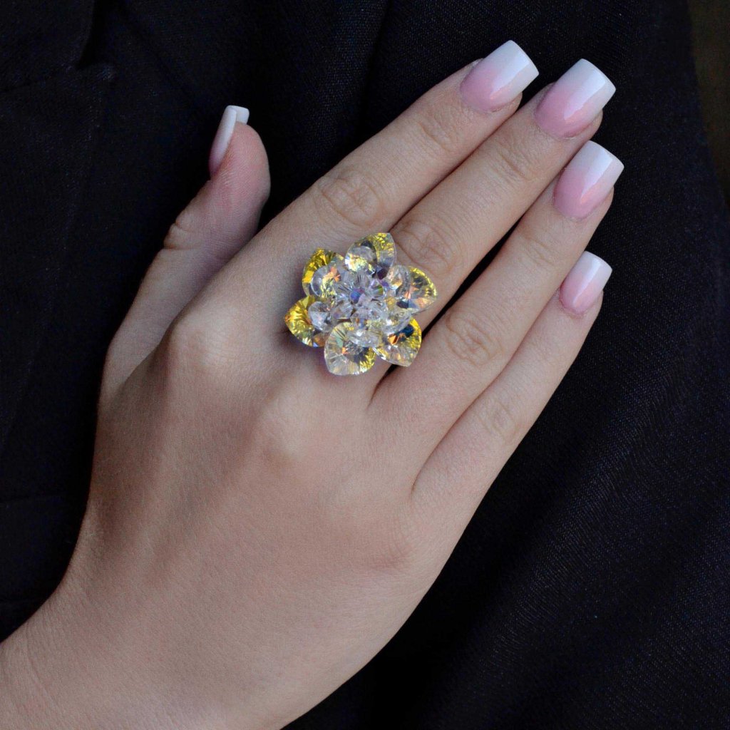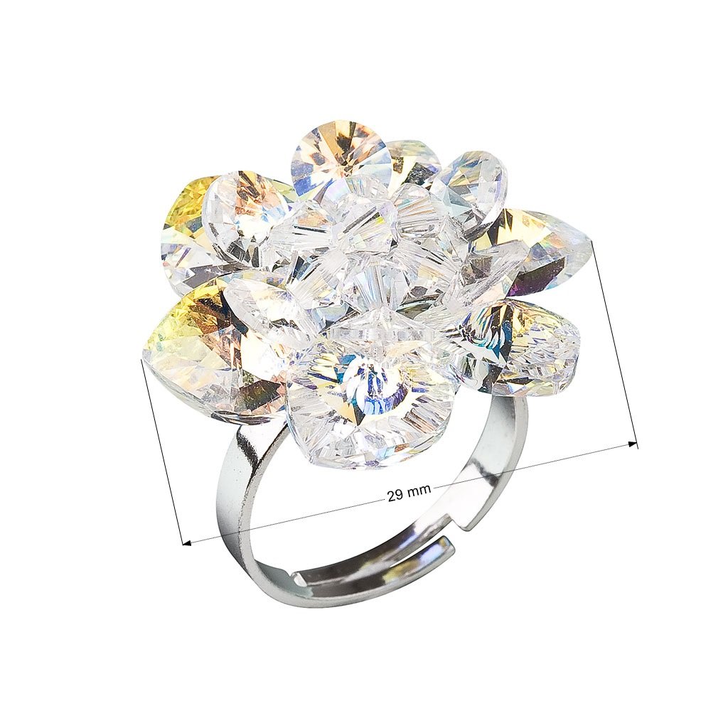 Strieborný prsteň s kryštálmi Swarovski AB efekt biela kvietka 35012.2