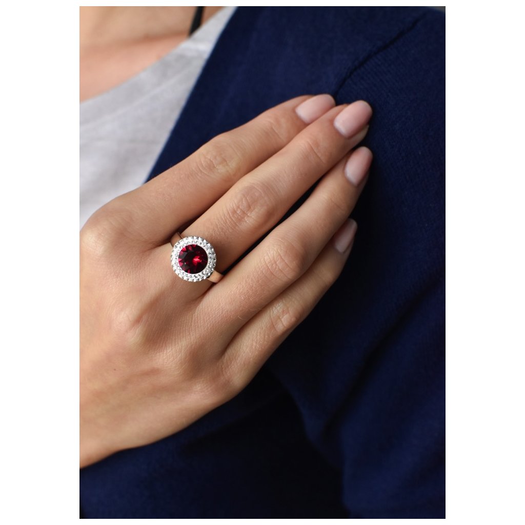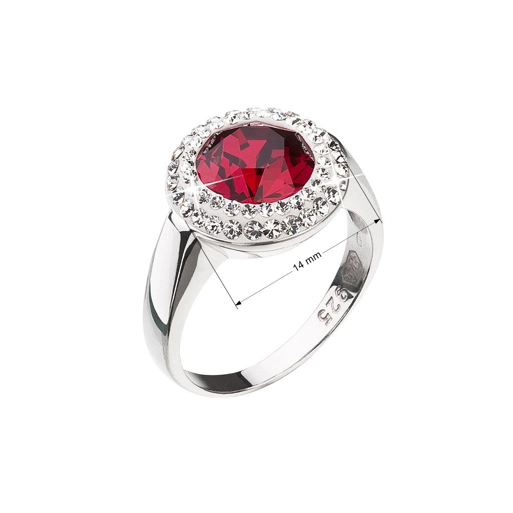 Strieborný prsteň s kryštálmi Swarovski červený okrúhly 35026.3