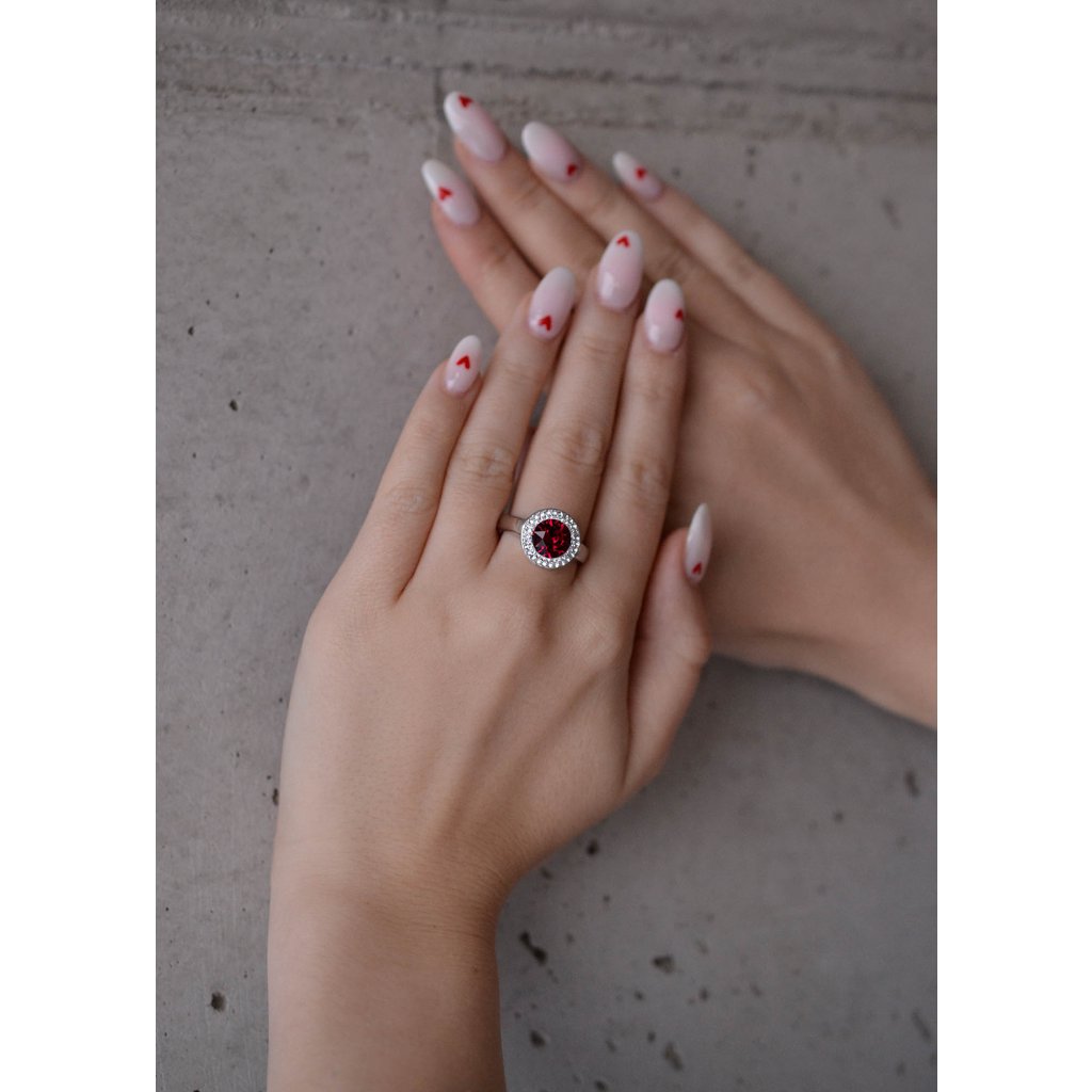 Parametre strieborného prsteňa s kryštálmi Swarovski červený okrúhly 35026.3
