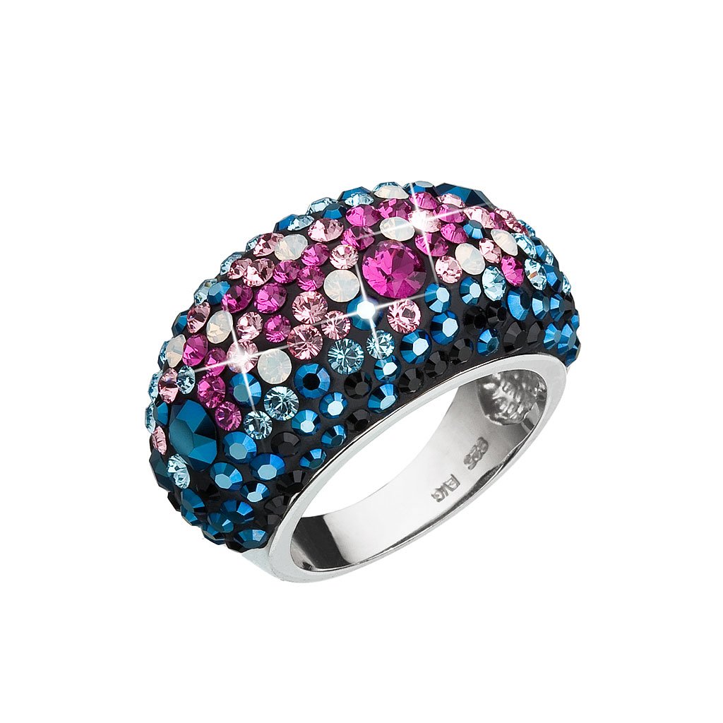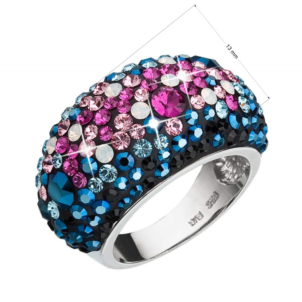 Strieborný prsteň s kryštálmi Swarovski mix farieb modrá ružová 35028.4
