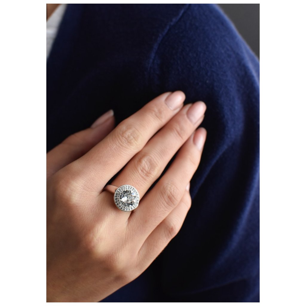 Strieborný prsteň s kryštálmi Swarovski okrúhly biely 35026.1