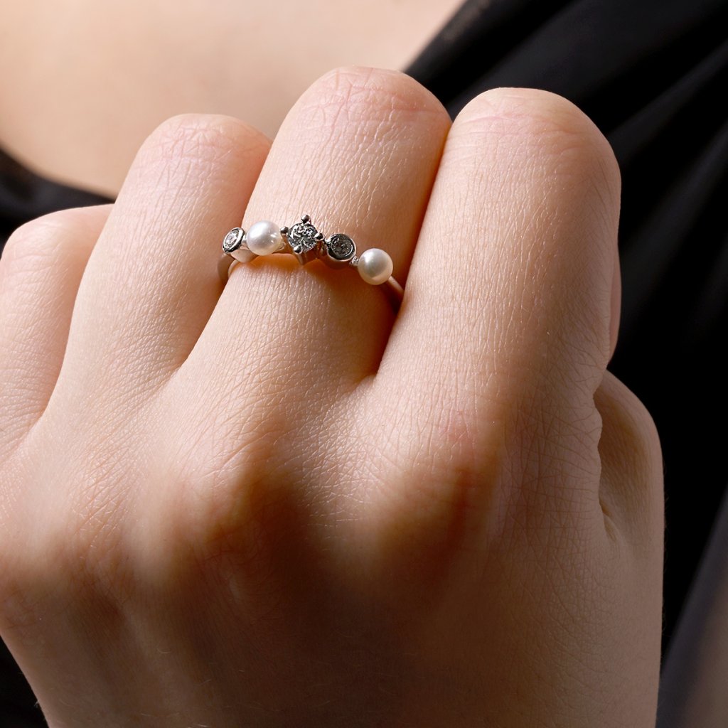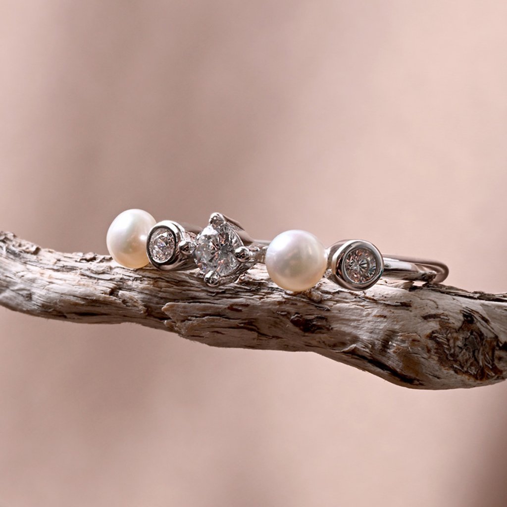 Strieborný prsteň s riečnymi perlami a zirkónmi 25007.1