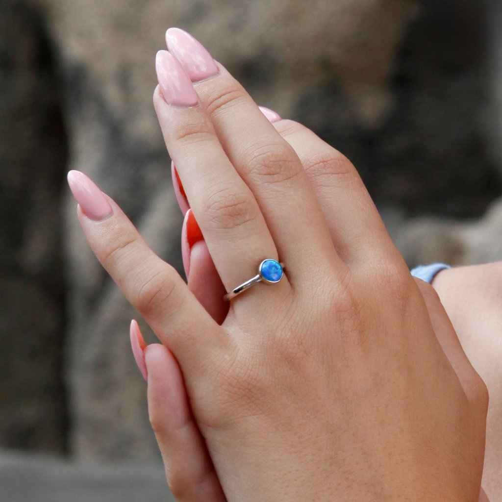 Strieborný prsteň so syntetickým opálom modrý okrúhly 15001.3