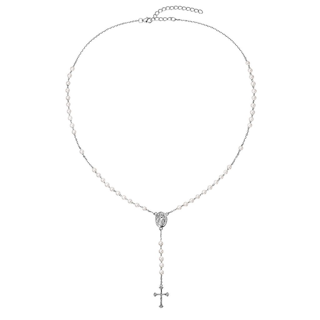 Strieborný ruženec s bielymi riečnymi perlami 22062.1