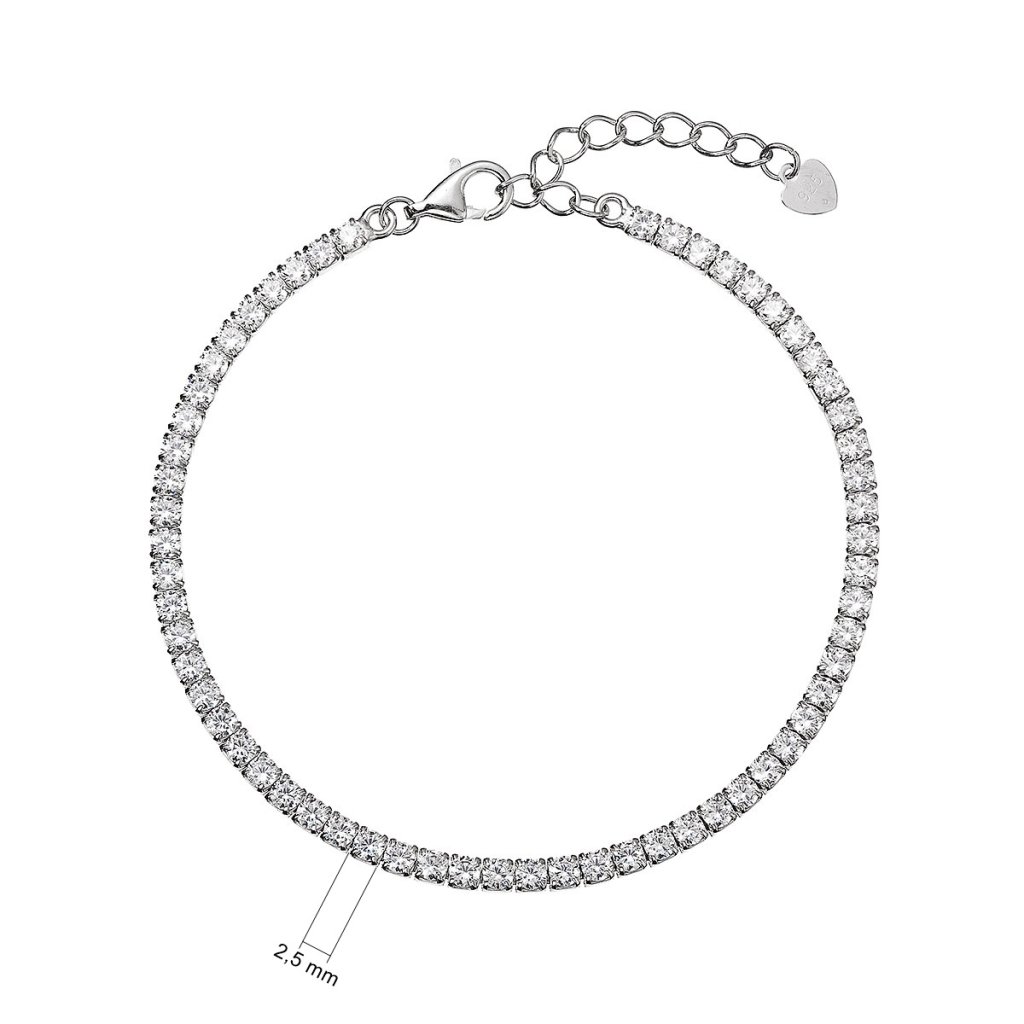 Tenisový náramok - jeden z najelegantnejších šperkov , Ktorý si môžete dopriať. Náramok je charakteristický nepretržitou reťazou kameňov, v tomto prípade trblietavých zirkónov, ktoré sú vsadené do základu zo striebra rýdzosti 925/1000. Guľaté z irkóny o veľkosti 2,5 mm vytvoria fascinujúcu svetelnú symfóniu na vašom zápästí.