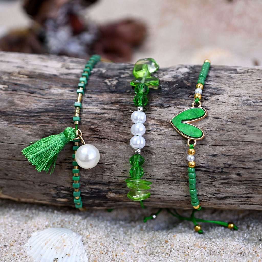 Sada 3 farebných náramkov - tri originálne kúsky, ktoré spolu nádherne ladia. Každý náramok je vzhľadovo iný, môžete ich nosiť dohromady pre výrazný look alebo jednotlivo podľa nálady a outfitu. Ideálny doplnok, ktorý oživí každý outfit.