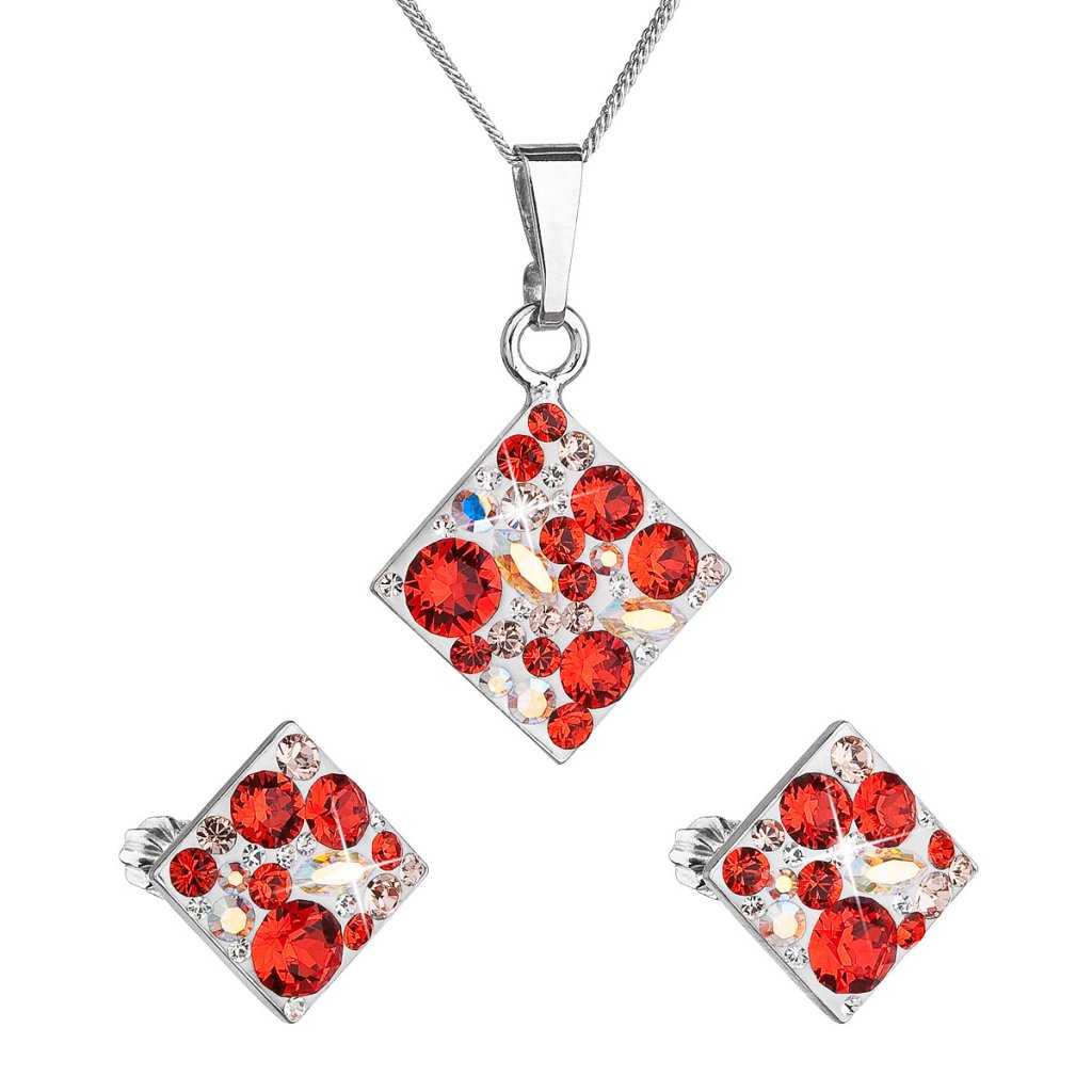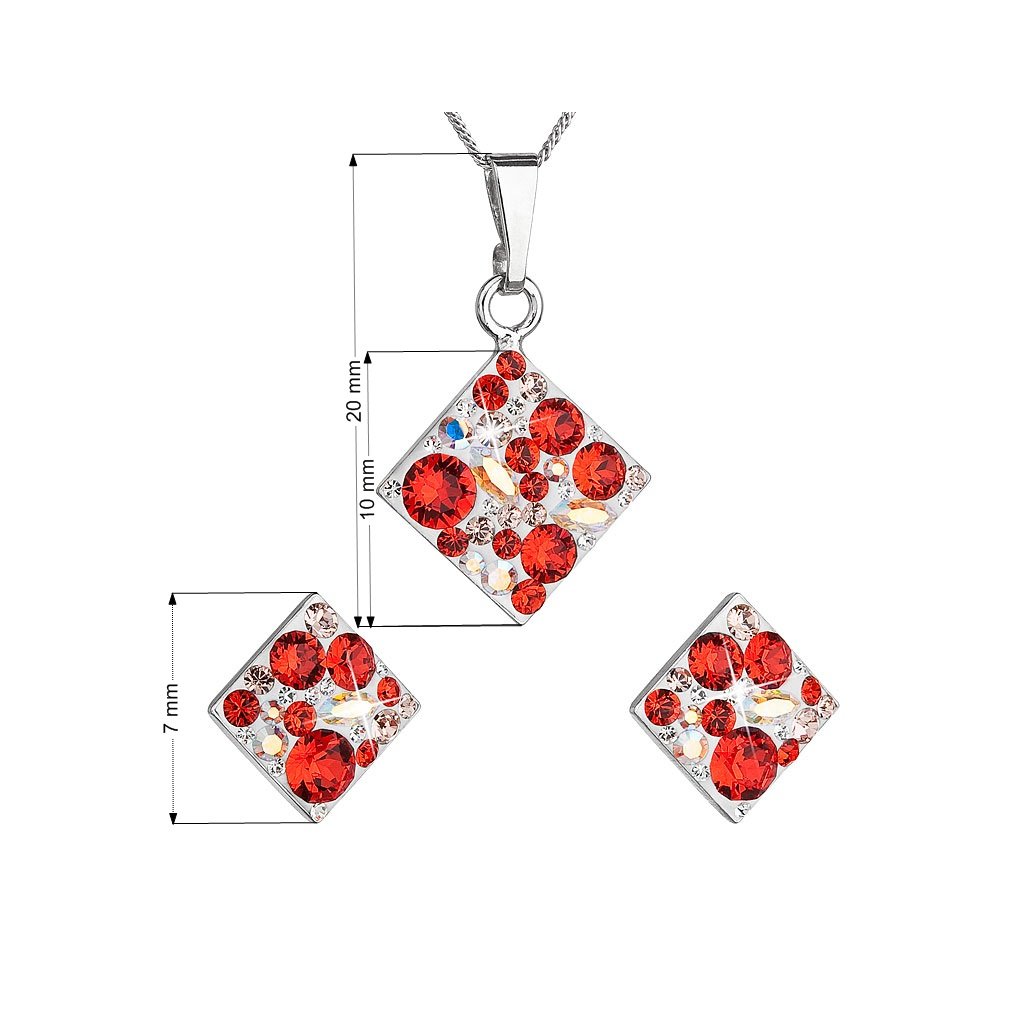 Parametre sady šperkov s kryštálmi Swarovski náušnice, retiazka a prívesok červený kosoštvorec 39126.3