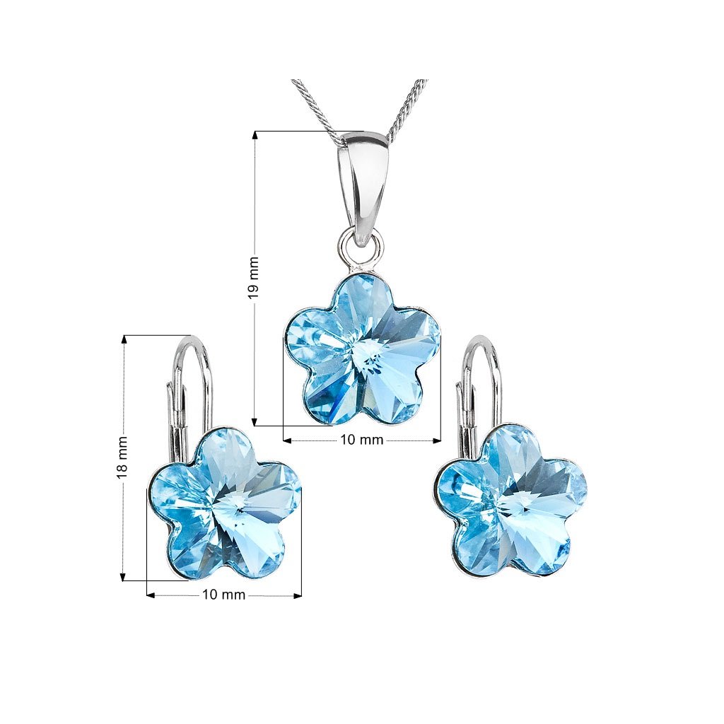 Parametre sady šperkov s kryštálmi Swarovski náušnice, retiazka a prívesok modrá kytička 39143.3