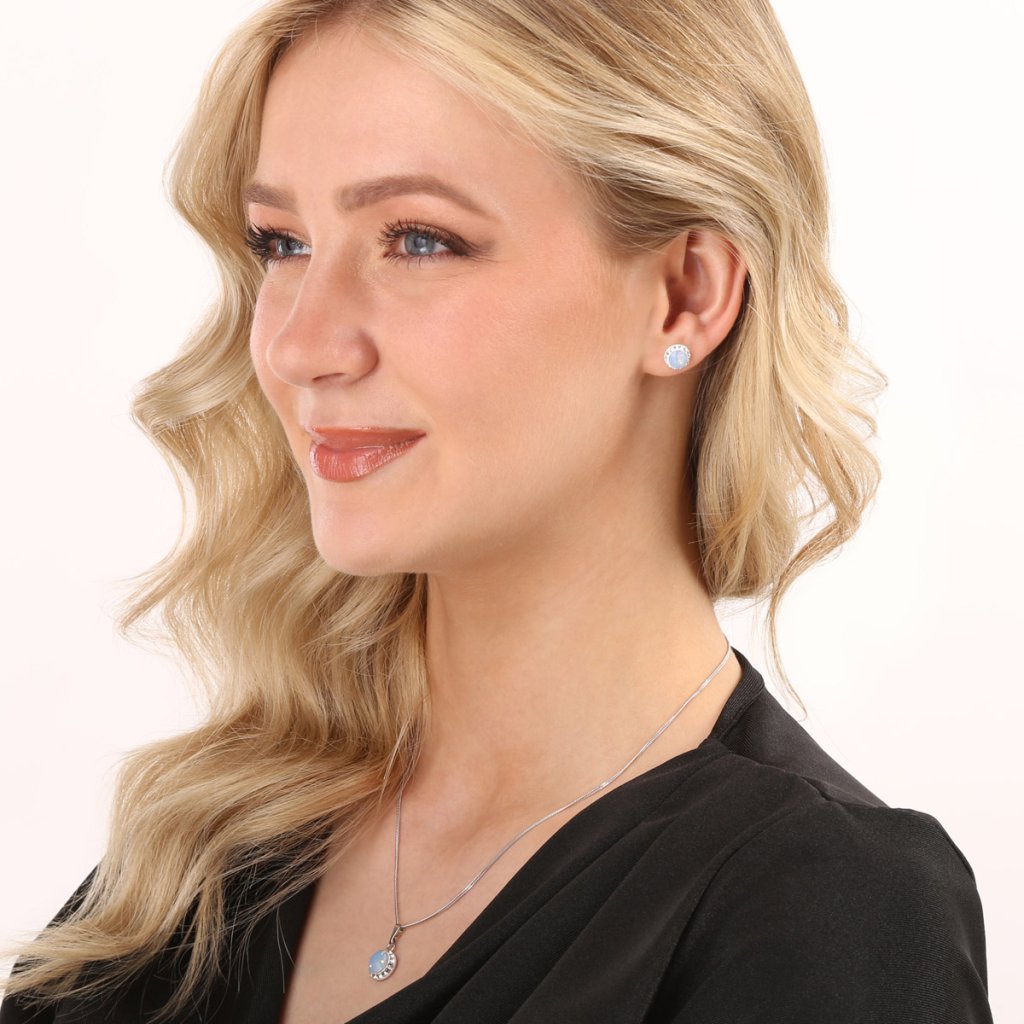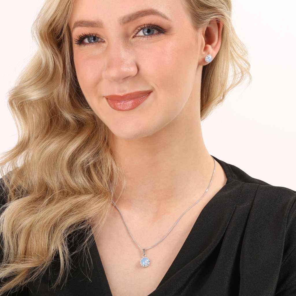 Parametre sady šperkov s kryštálmi Swarovski náušnice a prívesok modré opálové okrúhle 39352.7