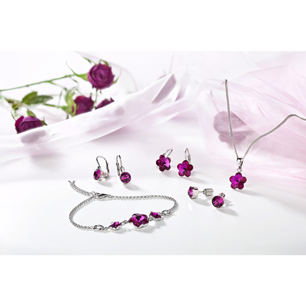 Súprava šperkov s kryštálmi Swarovski náušnice, retiazka a prívesok ružová kytička 39143.3 fuchsia