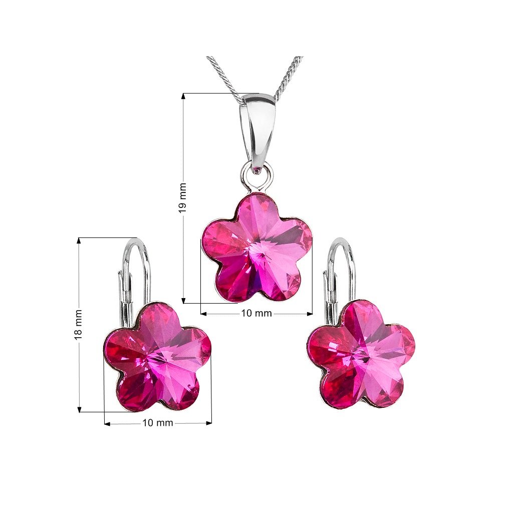 Parametre sady šperkov s kryštálmi Swarovski náušnice, retiazka a prívesok ružová kvietka 39143.3 fuchsia