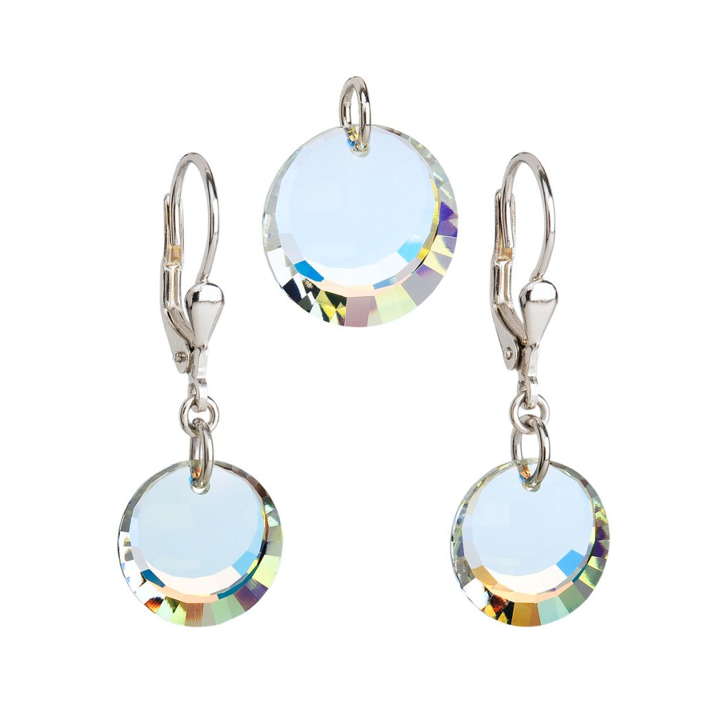 Súprava šperkov s kryštálmi Swarovski náušnice a prívesok AB efekt biele okrúhle 39017.2
