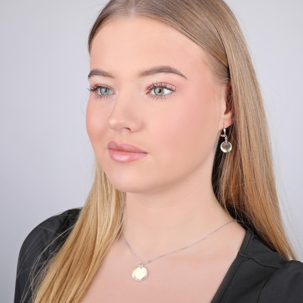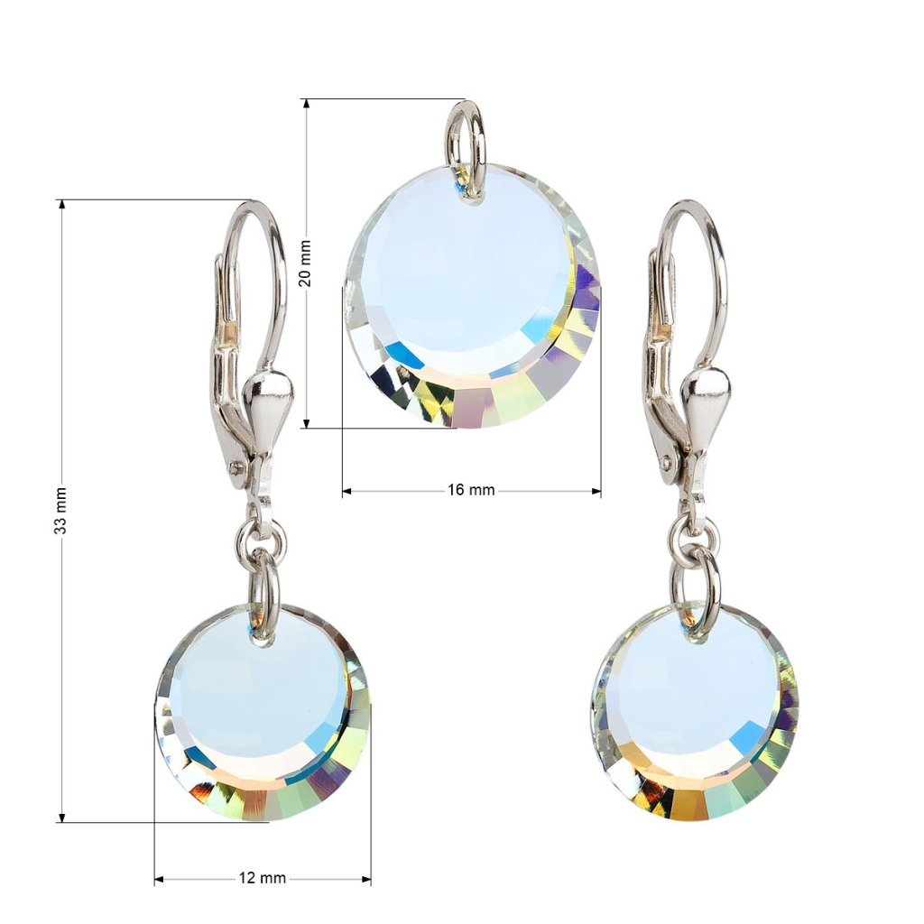 Parametre sady šperkov s kryštálmi Swarovski náušnice a prívesok AB efekt biele okrúhle 39017.2