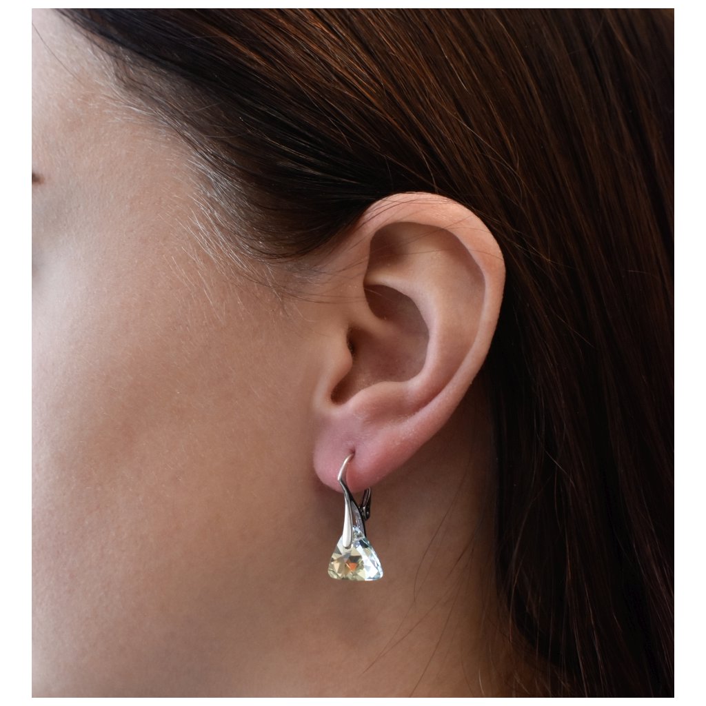 Nebojte sa nezvyčajných tvarov šperkov, doplnia váš outfit rovnako dokonale ako šperky okrúhle či hranaté. A navyše - budete originálni!Súprava 39174.2 obsahuje náušnice a prívesok v tvare trojuholníčkov. Šperky sú vyrobené zo striebra rýdzosti 925/1000, ktoré prešlo povrchovou úpravou ródiom. Ródium chráni šperk proti sčerneniu, zožltnutiu i poškriabaniu. Prívesok aj náušnice sú zdobené bielymi Swarovski kryštálmi s AB efektom, vďaka ktorému sa šperk náhderne blýska. Náušnice majú zapínanie na klapku. Keďže šperky neobsahujú žiadny prídavok niklu , môžu ich bez obáv nosiť aj alergici.