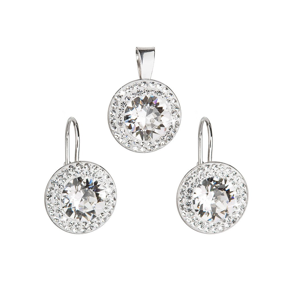 Súprava šperkov s kryštálmi Swarovski náušnice a prívesok biele okrúhle 39107.1