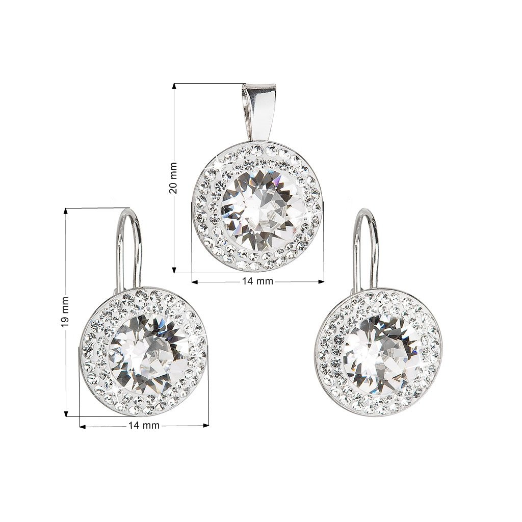 Parametre sady šperkov s kryštálmi Swarovski náušnice a prívesok biele okrúhle 39107.1