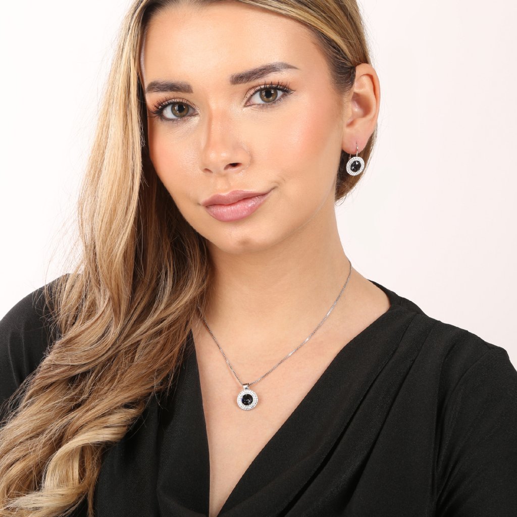 Parametre sady šperkov s kryštálmi Swarovski náušnice a prívesok čierne okrúhle 39107.3